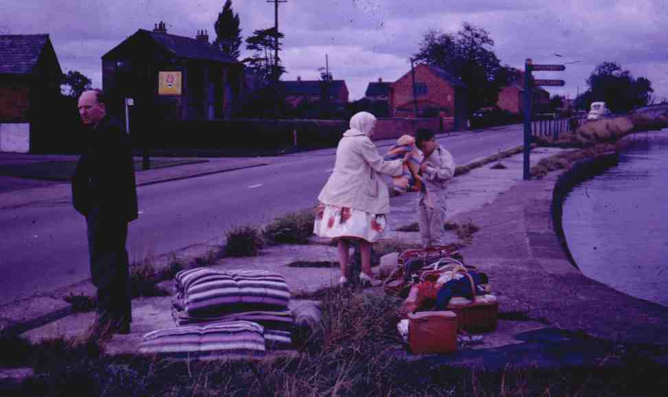 We cleared the lock and set off again. After Calveley there is a long straight stretch before the canal negotiates an “S” bend beneath the A51 Chester to Nantwich road. Just before the bridge was a BP Boat Service sign indicating that there was a garage nearby so we moored temporarily (that is to say… Mother and I held the ropes) whilst Father took the two five gallon (25 litre) “Jerry” cans normally secured on the rear deck, off the boat to fill with two stroke mixture (fifty to one petrol/oil ratio). The canal is in a cutting at this point and as Father scaled the grassy sides to reach the road he slipped and let go of the empty cans nearly which ended up in the canal. After a quick look around he found a path worn in the grass which lead up the sides of the cutting to emerge directly opposite the garage. We didn’t laugh... much!