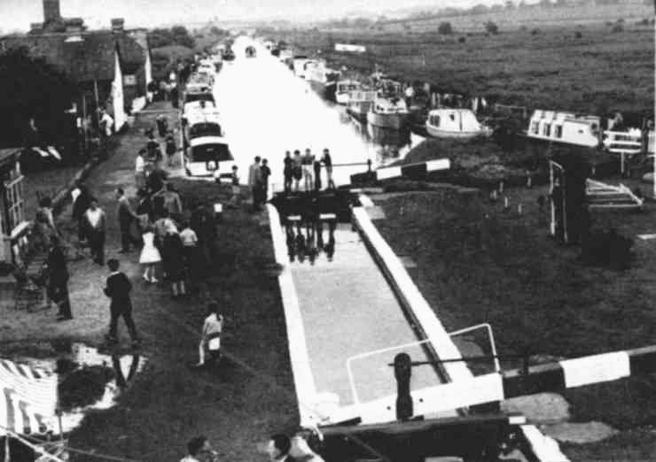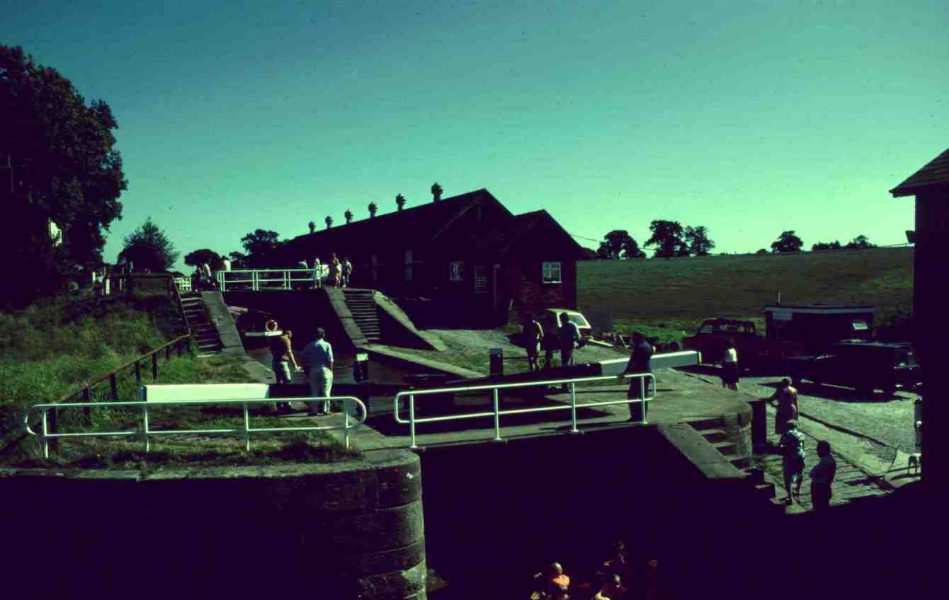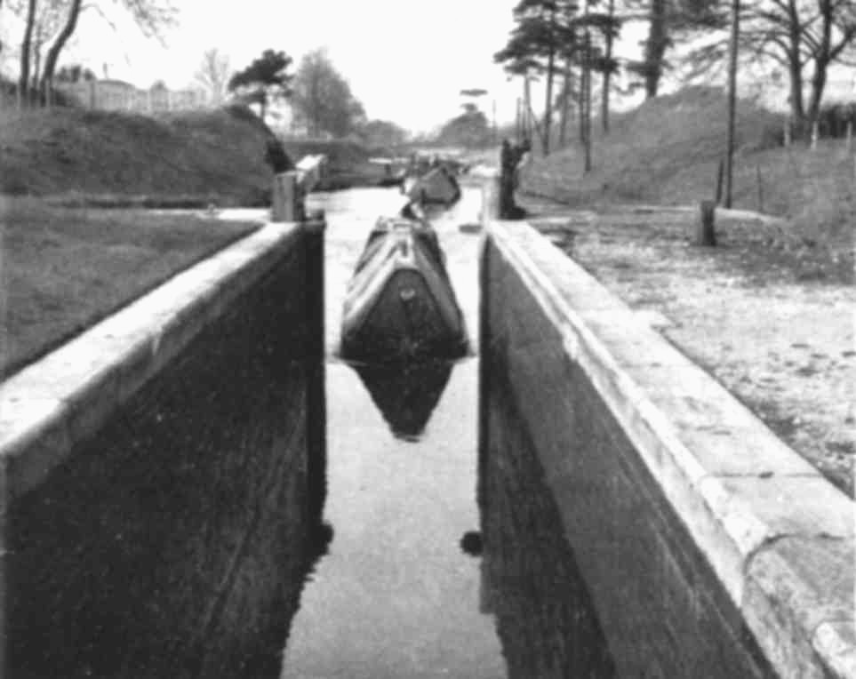 By the time we reached the locks, quite a queue had formed. We eventually passed through the locks as darkness fell. We made the passage just in time as the water level in the canal was dropping at an alarming rate and we only just cleared the top cill of the lock. Once through the lock, we moored for the night where craft had triple moored in the pound between the locks. Early next morning, Father untied us from the adjacent boats before anyone else was awake. He then “poled” us away from the other boats to the lower lock and operated it single-handed. Once through it he again poled us past the rest of the moored craft before starting the engine. I can still remember waking up to the throb of the little “Stuart Turner” and we covered quite a few miles before tying-up for breakfast. Mother christened the act of poling as Father doing his “vulgar (not Volga) boatman act”, a term that lasted throughout our boating adventures up until Father’s death in 1978.