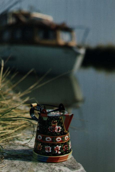 One essential piece of equipment that was supplied with the boat was aluminium “Billy” can complete with removable lid and wire carrying handle and wooden grip on top. The can was capable of holding a quart (two pints or 1200 ml) and was to be used for bringing back the milk on farm visits. I well remember donning “wellies” and trudging across many a muddy field, avoiding the occasional cow (and frequent cow pats) on the way to the farmhouse for our supplies. On the return journeys the route was retraced with butter, cheese and the "Billy" can filled with milk that was sometimes still warm.