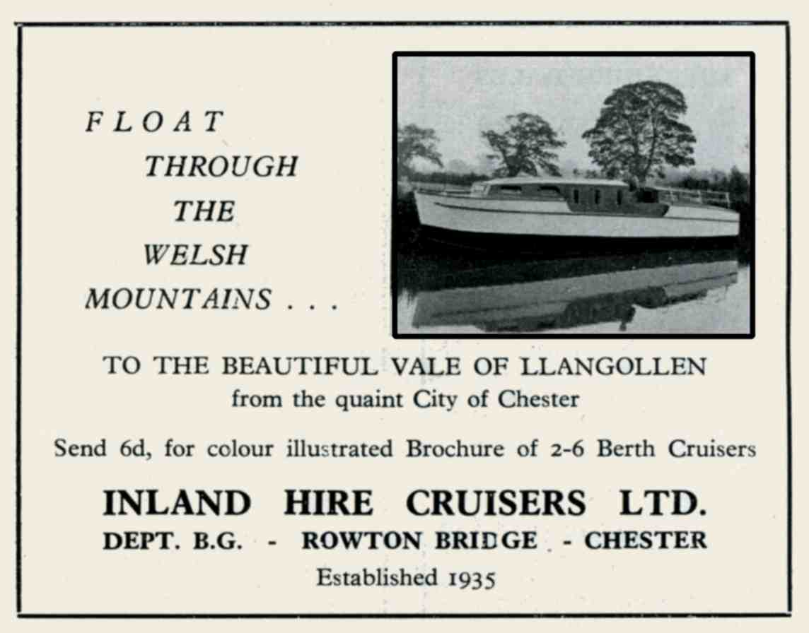 An old advertisement for Inland Hire Cruisers of Christleton with "Enterprise" illustrated