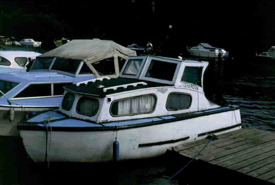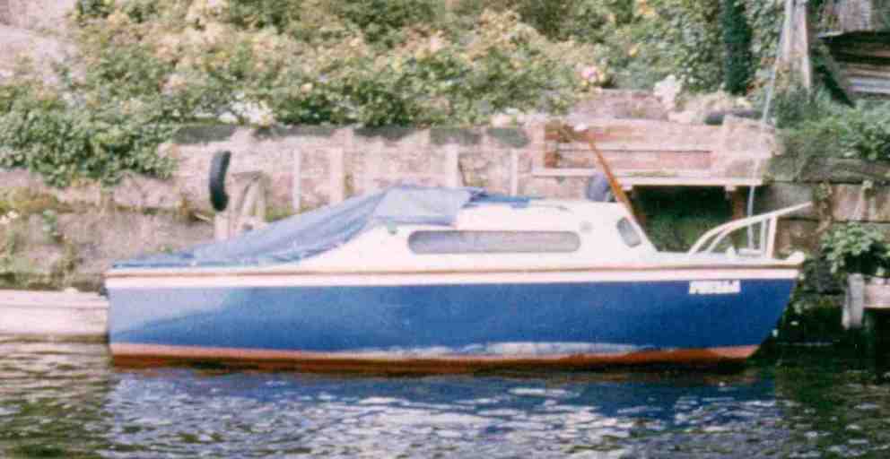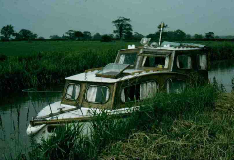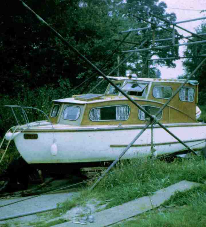 It was around this time that I was exploring the possibility of buying an inexpensive boat myself. When going to the various boatyards to purchase bits for “Phial” I would always look to see if they had any reasonably priced boats for sale. At Venetian Marine of Cholmondeston they had a brand new beige “Dawncraft” 22 complete with Honda 100 outboard motor on display outside the saleroom on the car park. I remember looking over it and admiring the exterior finish and the way that the interior was tastefully trimmed (orange dominated – fashionable at the time and it matched the beige of the exterior). It would have been nice to have been able to afford a new one but my budget would not have stretched to that. So it was back to looking around the boatyards. We didn’t go out of our way boat-hunting but an opportunity was about to unexpectedly present itself.