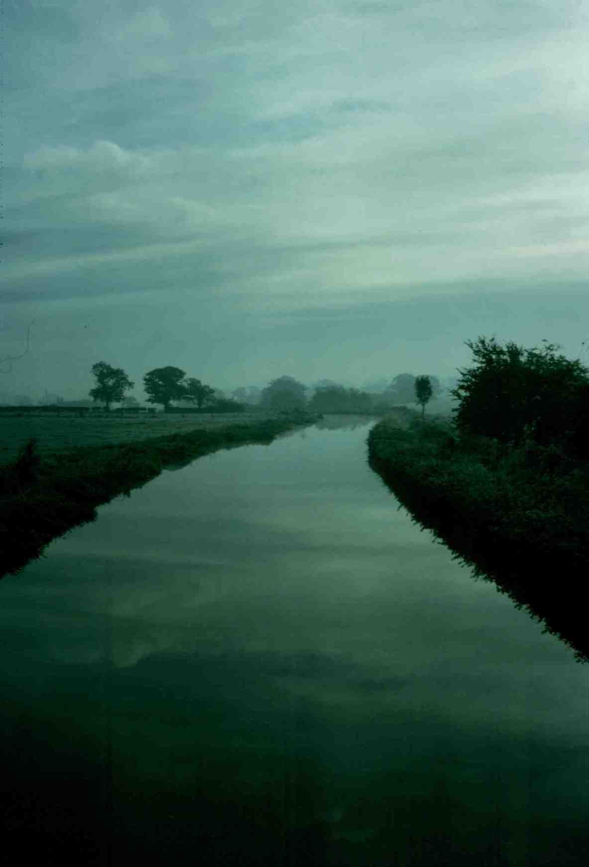 Early in the spring of 1975, I hired a narrowboat for a long weekend. We were accompanied by our friends Ian and Rita Fitzpatrick plus their small son, Carl. The boat we hired was “Sunseeker”, a fifty-five foot Mastercraft from Eggbridge Marina at Waverton. We cruised along the “Shroppie” as far as Cholmondeston on the Middlewich Branch. Even though I don’t think that our friends enjoyed as much as we did, I managed to take some atmospheric photographs, some of which are, even today, shown in some of my audio/visual presentations. In fact, the first transparency in the “Canalscape” audio/visual presentation (from which this eBook borrows its title) illustrated below was taken on this occasion.