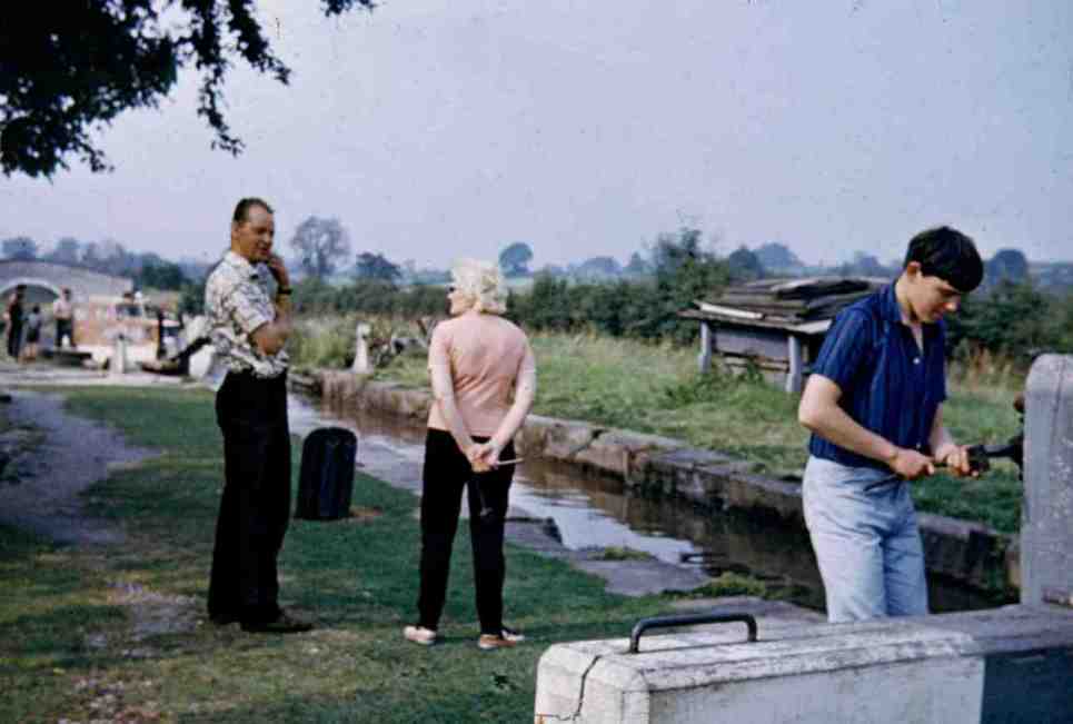 The Deans (the Kathleen’s owners) had a caravan (later replaced by a log cabin that is still there to this day) on the off-side of the canal approaching Ellesmere and we had been invited to call in when passing. The “Kathleen” had a loose rubbing strip, and the opportunity to have it fixed by the boat's owner was taken. Mrs Dean took mother and I down a wooded path to the nearby Colemere whilst her husband bent down and displayed his ample backside as he fixed the rubbing strip with a nail and hammer (I would have used a screw and screwdriver had it been up to me). The operation was captured on ciné film and even today it still makes me smile when ever I watch it.