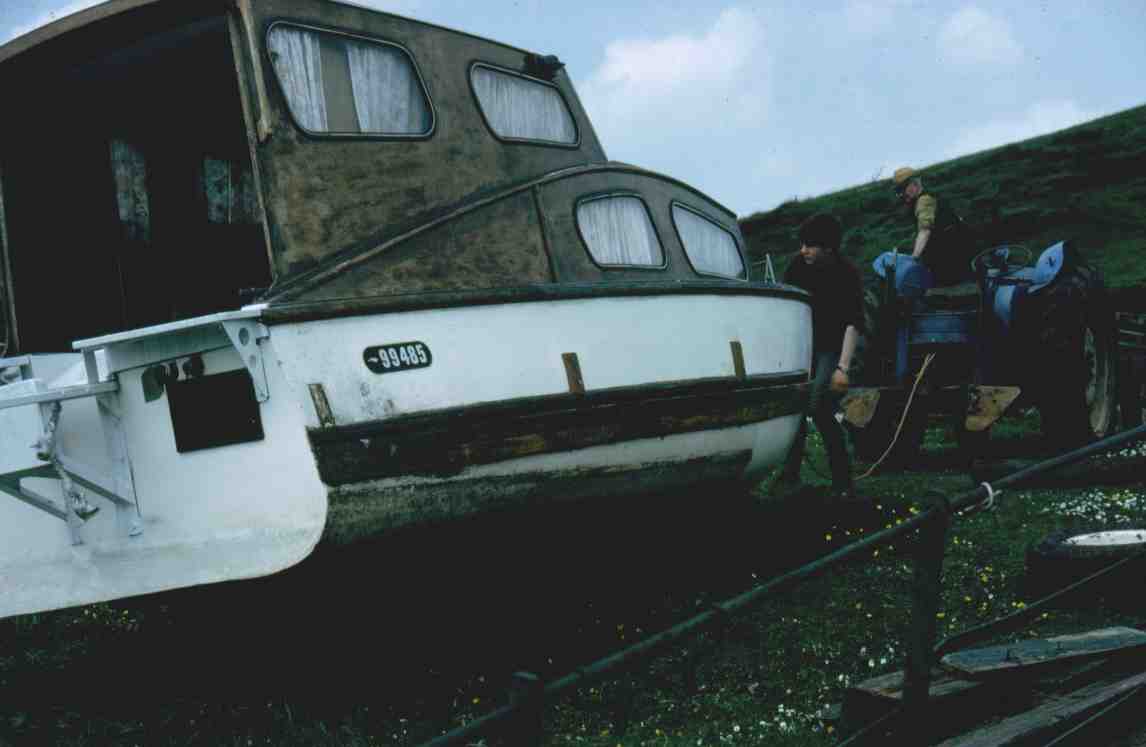 Dean's converted pontoon "Dorothy" near Barbridge Junction in the late 1950s