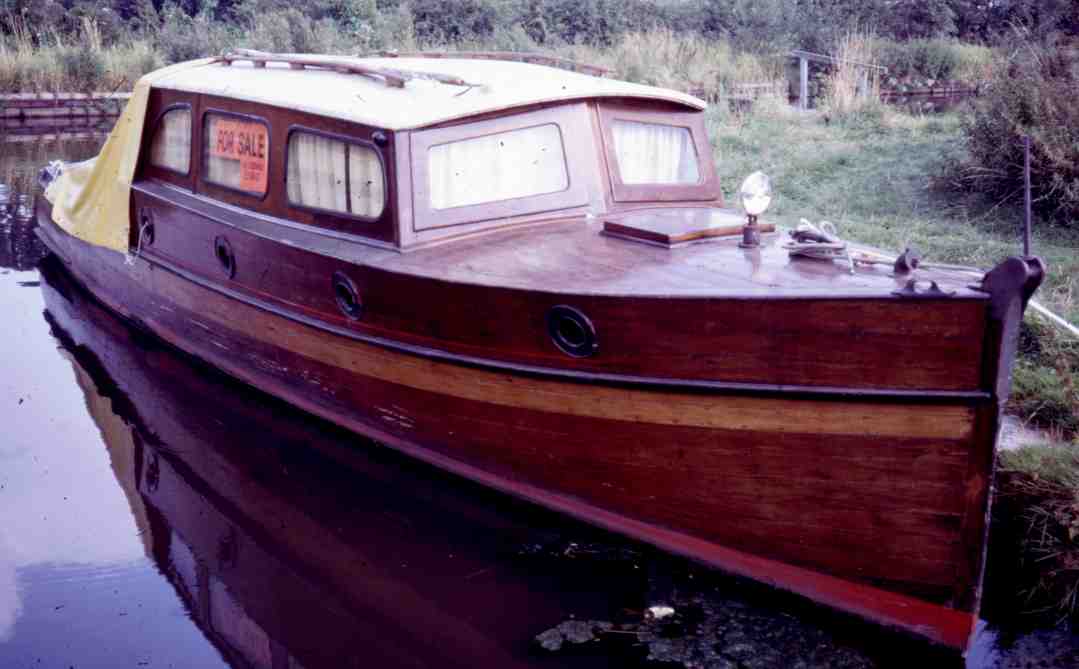 In 1970 I met a girl called Barbara Place who I was to marry a few years down the line. She was not particularly interested in canal cruising at that time although she did come with us when we journeyed down the River Severn to Gloucester. After I was married I did not spend as much time at Beeston or go cruising on "Phial" as I did previously due to family pressures. I think that my parents were disappointed in my not going canal cruising with them any more. With hindsight, they were not getting any younger and would have appreciated the help on locks and swing bridges. At one point they decided to look for a larger boat to replace “Phial” with in the hopes that it would entice my wife to come canal cruising (I didn't need any encouragement). On their return trip during the 1974 holiday they saw a boat for sale at Brewood on the “Shroppie”. It was called “Smuggler” and was a thirty foot (ish), varnished mahogany, carvel-hulled, aft cockpit cruiser not unlike a Taylor and it possessed great character as well as an inboard diesel engine. Mother asked me to take her down to Brewood by car to have another look at it and to hear my views on the boat. This I did accompanied by a very pregnant wife who did not enjoy the trip at all. It was a nice boat but would have required a lot of up-keep being constructed 100% of timber, most of which was varnished. With hindsight it would have been good for them to have bought this boat as they would have had more space and not have to have worried about the problems associated with outboard motors. But, for various reasons, the plan never went ahead and we have not knowingly seen “Smuggler” since then.