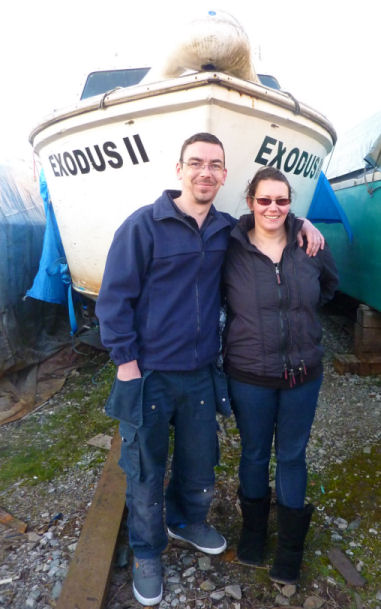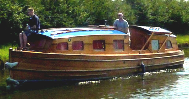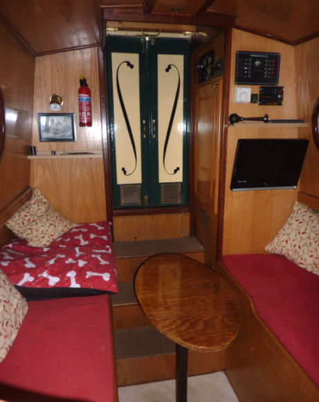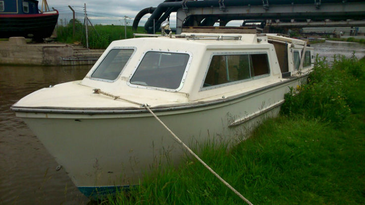 Once at Lymm I fitted LED strip lighting beneath the gunwale in the corridor leading from the aft cabin to the lounge, tidied up and cleared the old wood left at the end of our jetty as well as removing some of the plant growth. By lunchtime the mist had cleared and the sun was warm enough to allow me to work in shirt sleeves. When the I had completed the jobs that I planned to do I locked up the boat, put the things in the car that were to be taken home then Ruby and I headed for Wincham Wharf near Northwich on the Trent and Mersey Canal to see how my daughter Lisa and her husband Nathan were getting on with the boat they had purchased (see Chapter Two - Easter Escape). They also wanted some advice regarding repairing the glass fibre hull of their Creighton Inlander 32. When we arrived I was amazed at the amount of work they had already achieved. The rear cabin was completely stripped as was the front cabin and Lisa was on her hands and knees cleaning the inside of the hull. I suspect that they are going to have a good bonfire with the timber that they have removed. With the inspection complete and advice given it was time to head down the M56 before rush hour after a productive day that turned out to be the warmest day of the year to date!