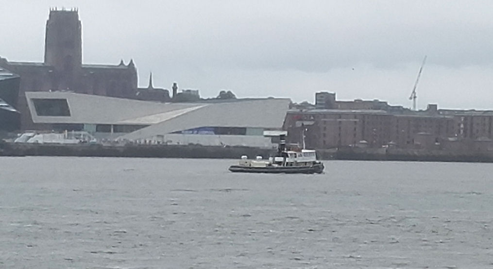 leaving Stanley Dock for Collingwood Dock in the shadow of the Tobacco Warehouse