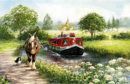 I usually receive at least one Christmas or birthday card that has a canal scene on it and 2015 was no exception. I received a birthday card from my grandchildren showing a wide-beam trip boat being pulled by a horse on, I think, the Kennet and Avon Canal near Newbury, which I have reproduced here for your appreciation.