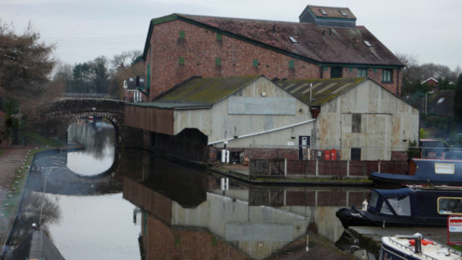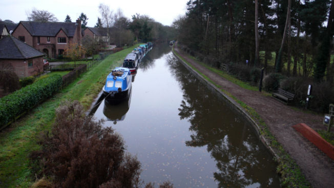 The isolated Litchfield Canal Aqueduct over the M6 Toll Motorway