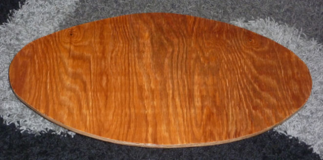 When we bought Squirrel we noticed an additional Desmo table leg socket in the aft cabin and we had, on our "to do list" making an occasional table to fit to the socket. We had previously bought a new table leg and I had a couple of table sockets and a piece of ply wood (originally one of the bunk lids on our old boat Total Eclipse) cut into an oval on the band saw at work. Once home the Desmo socket was fitted, table top sanded down, cleaned and five coats of varnish applied. The resulting finish exceeded my expectations and we couldn't wait to try it out on the boat. When we did try it out the Desmo leg wouldn't fit securely in the floor socket. On inspection I discovered that the bottom of the socket had been trimmed in order to clear the ballast immediately below it so the leg had to be trimmed accordingly. this was done at home using my small angle grinder fitted with a cutting disc and did the trick.