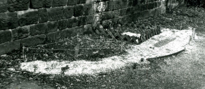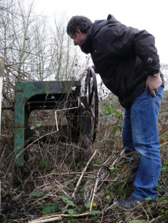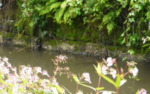 The next day had a wet start but it did not stop Paul and I walking across the field dodging the horse droppings to look at the old lock remains on the River Douglas It was difficult to find the remains due to the undergrowth that lines the river at this point.
