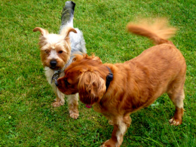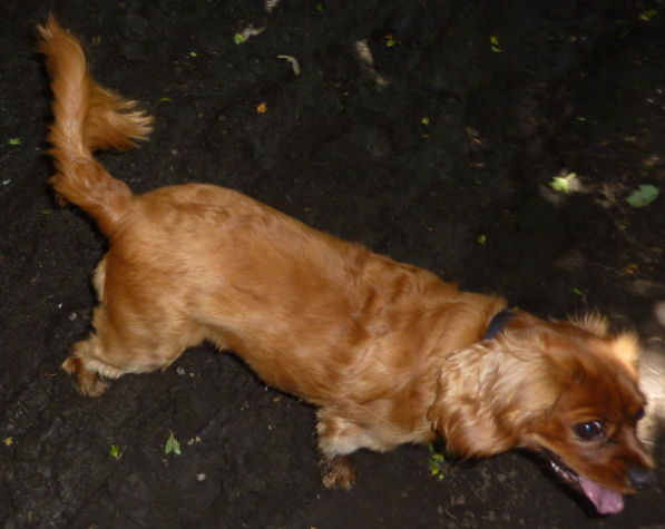 Not long afterwards we were at Dean Locks and we decided to moor just after the bend beneath the locks. As we pulled in Ruby jumped off right by a wasps' nest. She yelped repeatedly and ran towards me looking around at her back at the same time. After moving the boats up past the nest we calmed her down but her nose was already swelling and she was looking very sorry for herself. Once the boat was moored we examined her, bathed her with antiseptic and applied antiseptic cream to the affected areas. We counted six stings, some of which still had the wasps' stingers in them. Once Ruby had been attended to she was back to normal except for a swollen nose and scratching where the sings were. We got our chairs and table out and enjoyed the rest of the afternoon before it started to rain and we beat a hasty retreat inside the boats.