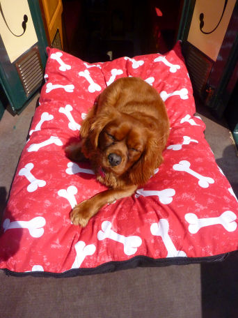 We had bought Ruby a new dog bed for the boat and she christened it on the back deck in the warm spring sunshine... money well spent I think. The cruise back to Lymm was very pleasant but uneventful and after putting the boat back on its mooring we made our way home after a both productive and relaxing couple of days.