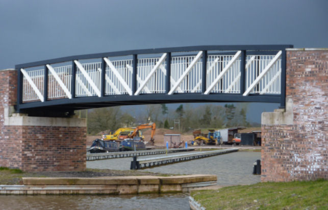 When the new Mersey Gateway bridge is completed the existing Runcorn Silver Jubilee Road Bridge is to be used for local traffic only which will remove the need for a feeder road from the Runcorn Expressway which crosses the canal at Waterloo Bridge at low level blocking the navigation at this point. This feeder road bridge will then be demolished leaving the line of the canal unobstructed and allow the restoration of the Old Line of Locks and connection to the Manchester Ship Canal to take place. Construction of the new bridge is moving quickly and we could see the concrete support towers in the River Mersey rising above the trees and houses. More information about the proposed restoration is available from the Runcorn Locks Restoration Society at its "Unlock Runcorn" website and also the video about the project with a commentary by comedian John Bishop can be viewed from the website.