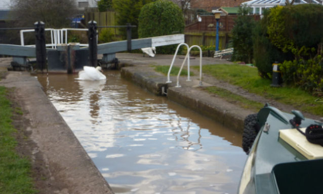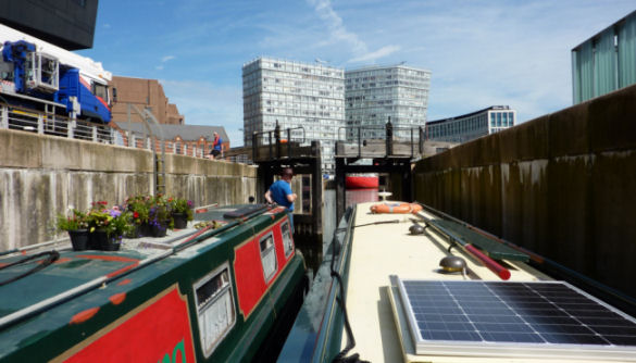 With Hartley's Gate dropped we made our way through Albert Dock, Canning Half-Tide Dock and Basin to Man Island lock without too much interference from the wind. We were sheltered in the cutting in front of the Three Graces that lead to Prince's Lock and then followed the channel to Sid's Ditch. The wind buffeted us as we turned into Trafalgar Dock, beneath the bascule bridge that lead to Stanley Dock and the locks where the C&RT personnel were waiting for us with the bottom gates of the first lock open for us to enter.