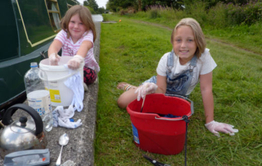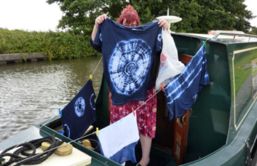 The next day we had not planned on cruising far... to Burscough in fact. As it was another fine, sunny day Paul and Wendy had brought tie-dye stuff for the children (and adults) to make their own tie-dye t-shirts. We had previously bought plain white t-shirts of the relevant sizes whilst we were in Liverpool for just this purpose. Everyone created their own pattern and dyed their t-shirts accordingly. The resulting garments were put on improvised clothes lines to dry and we planned to have a day when we all wore them at the same time. Whilst the tie-dyeing was in progress Ruby and Rosa made the most of the time and played tick for about an hour non-stop.
