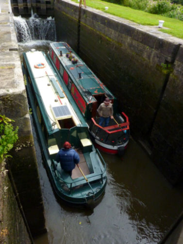 After our archaeological walk we set off through the locks in the drizzle and were soon passing Wigan Pier. We had a quick stop above Henhurst Lock for lunch then the sun came out in time for us to negotiate the two Poolstock Locks. We remembered that the pound separating the two locks was shallow so extra care was taken to make sure that the boats didn't go aground... which they didn't. We planned to moor at to Ince Moss next to the wetlands. It was a great mooring and the chairs came out yet again whilst our dinners cooked.