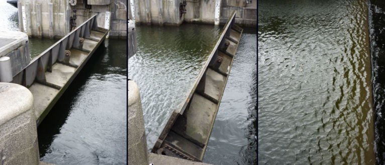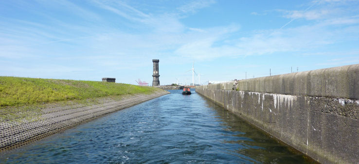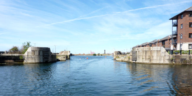 Entering Prince's Dock... note the marker buoys indicating the navigation channel