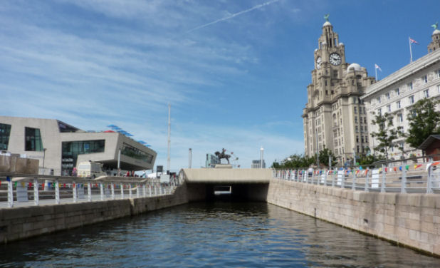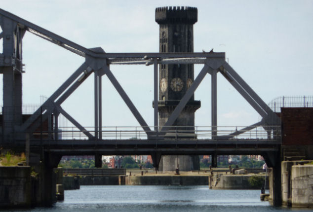 The wind had got up overnight ready for our departure the next morning. We were due to set off at 8.00 but the C & R T officer (whose name was also Paul) advised us to wait for an hour or so as he had measured 25mph side winds so had not dropped the lock gate at Hartley's Bridge... the entrance to Albert Dock from Canning Half-Tide Dock. After an hour or so we went to see if we could leave yet and as the wind had dropped he opened the lock gate and asked us to make our way to Mann Island Lock which he would have ready for us to go straight into.