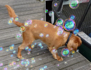 The following morning we went around the shops in Liverpool One and on our return we all got our collapsible chairs out and sat out on the pontoon in the beautiful sunshine Wendy made tea and coffee and brought out a plate of cakes. One of the cakes was Battenberg which is Paul's favourite. When we had finished there was one piece of Battenberg that had Paul's name on it. He picked up the cake to eat it and dropped it in the dock. Maybe there is a jellyfish beneath the pontoons called Paul as well!. Wendy had brought a bubble machine to amuse the children and it had an unexpected fan in the shape of Ruby. She enjoyed chasing the bubbles and tired herself out after an hour of playing. We promised to buy her one of her own on our return from holiday (which we did).