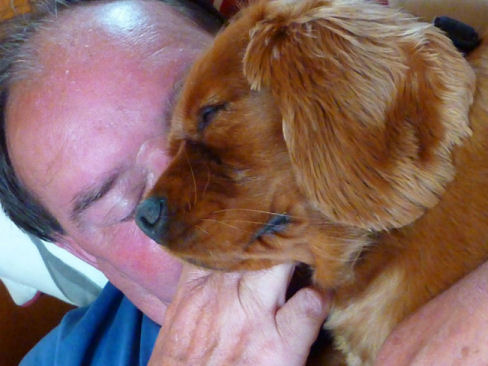 At Leigh we stopped to replenish the cupboards then planned to moor for the night at Boothstown. In the meantime we were on our home waters and enjoyed cruising in the brilliant, hot sunshine. At Boothstown we found our favourite moorings empty so after we had moored we had a kip. Ruby joined me and Ange took the photograph below which we thought was really touching and have included it here.