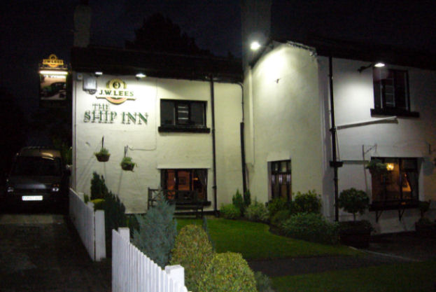 After lunch we set off for Burscough and travelled back through the lush agricultural land. Whilst Paul and I emptied the loos and topped-up the water tanks we carried on for a couple of kilometres until we reached the moorings just before the junction with the Rufford Branch that leads to Tarleton and the tidal River Douglas, the River Ribble and the Lancaster Canal. After showering and changing we all went to The Ship Inn at Lathom (adjacent to the second lock on the Rufford Branch) where we had booked a table for a meal. The meal was wonderful and we returned to our boats with nicely full stomachs. We cannot recommend this restaurant too highly.