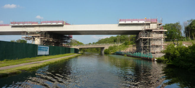 Partially completed Second Mersey Crossing Approach Bridge across the Bridgewater Canal
