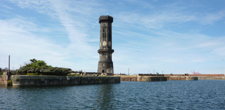 Jesse Harley's 1848 Octagonal Clock Tower marks the entrance to Trafalgar Dock