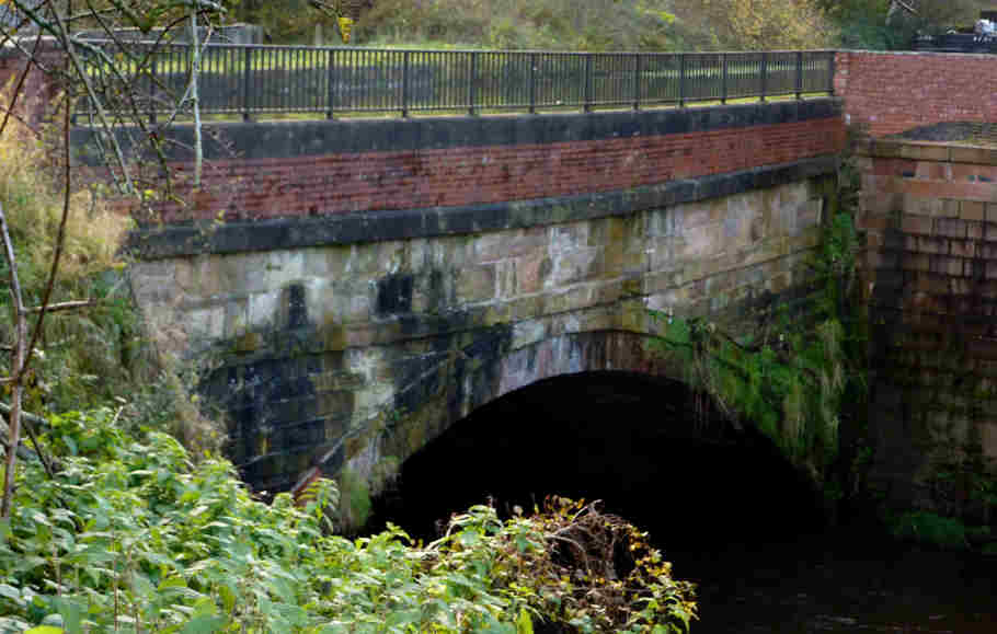A recent monochrome photograph of Agden Bridge