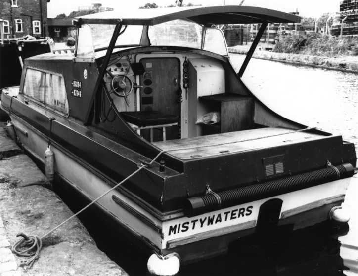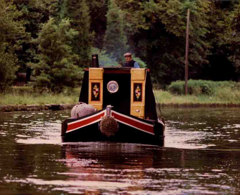 In the spring of 1984, when we inspected “Misty Waters”, I was relieved to discover that my treatment of the hull had been a complete success with no sign of moisture in the bilge. The engine was behaving as it should and all the modifications made were successful. One more addition was the fitting of a transom guard. I had it made by my friend... Tony Holmes, who was a welder at Bidston Steel where we both worked. A holder for a flagpole was incorporated in the design as was a rubber “bumper” which had (literally) fallen off the back of a lorry at work. The flagpole itself was a broken mop stale that I had rubbed down, varnished and fitted with brass hooks to attach a pennant to. When the guard was fitted, our Inland Waterways Association pennant was fastened to the flagpole and very smart it looked too. Another friend... Malcolm Munro, who lives in our road, wound decorative rope around the tubular guard and we painted it white before it was fitted to the boat. We were now ready for our first holiday on “Misty Waters”. And, needless to say, we planned to cruise up the Llangollen Canal.