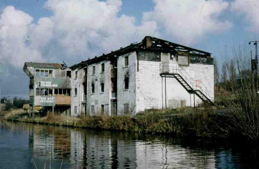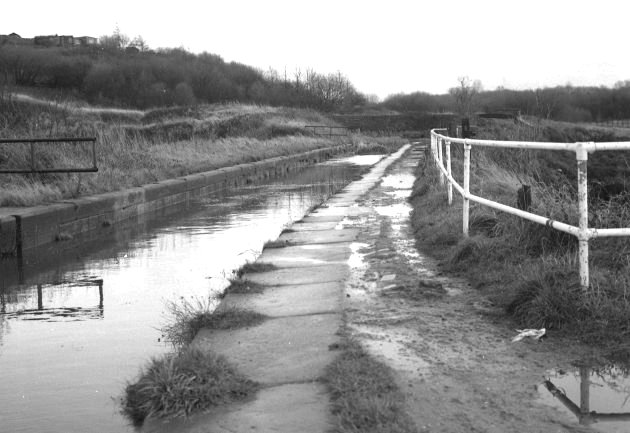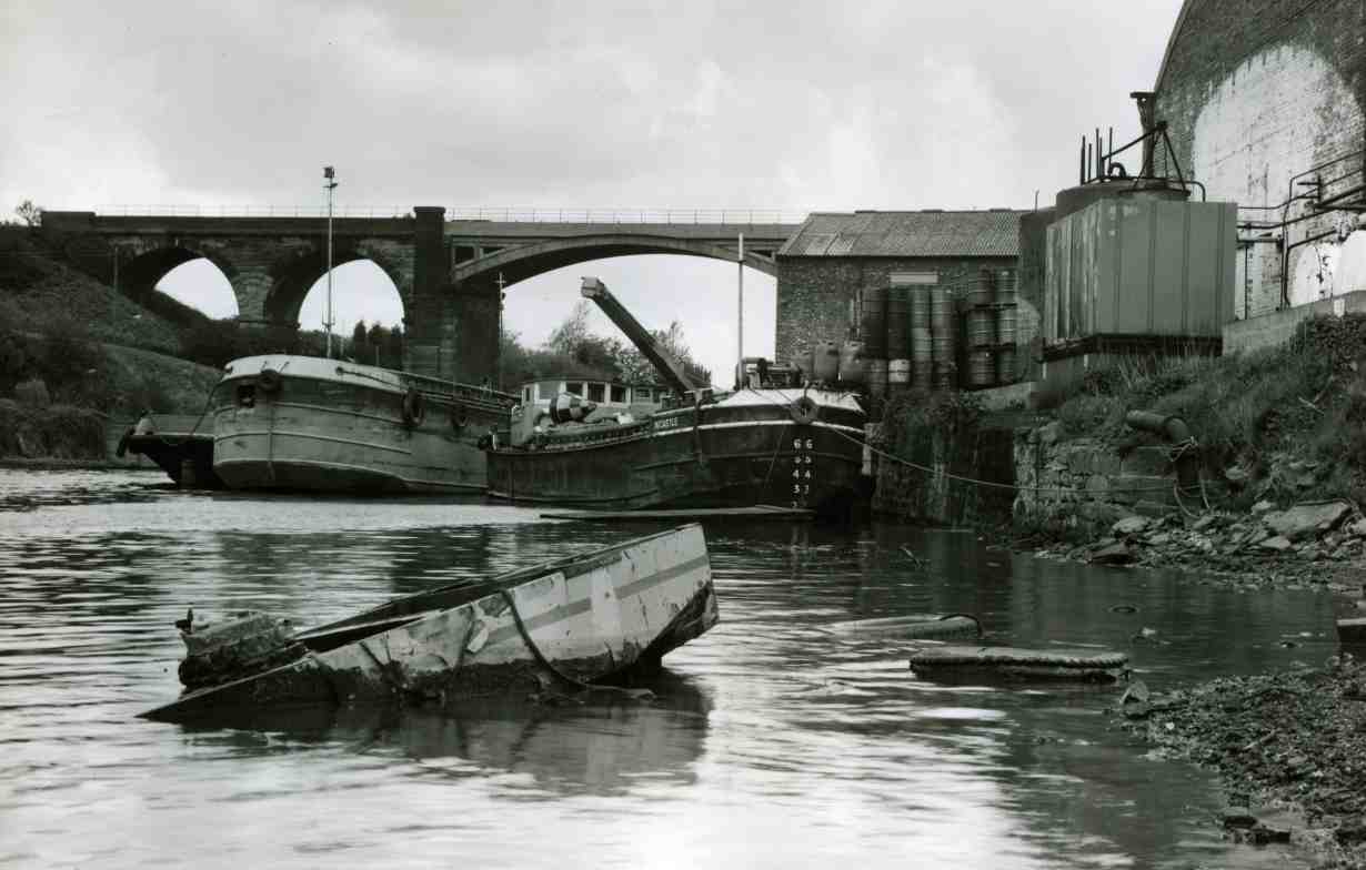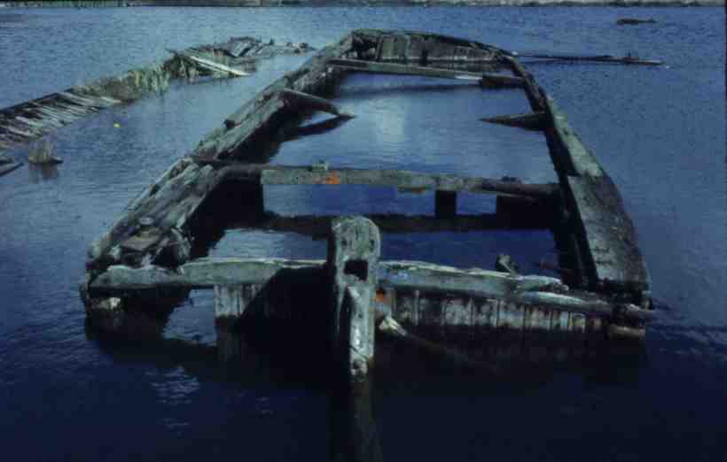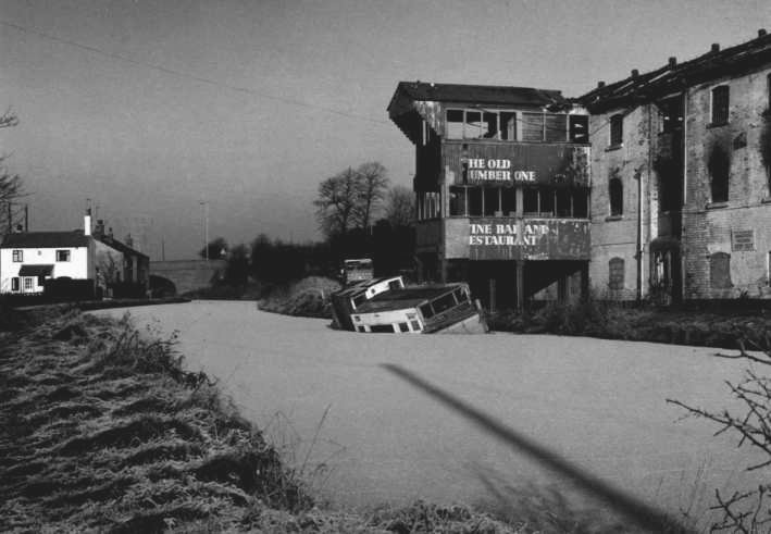 A sunken barge at Boothstown Pen, now the location of The Moorings pub, Bridgewater Marina and a housing development