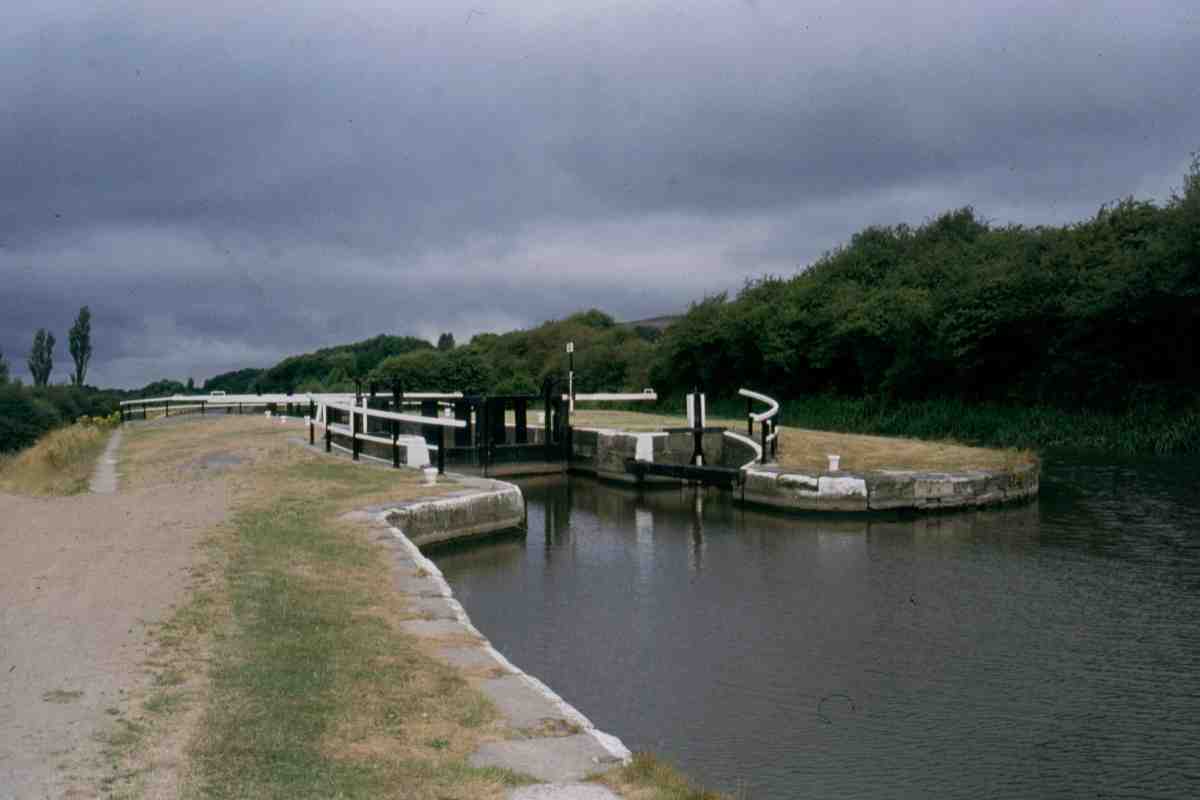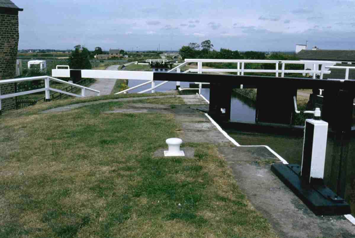 On leaving Wigan Pier, the canal, filled with duckweed, leaves the town behind, soon reaching the two locks at Pagefield and Ell Meadow. The locks originally had duplicated chambers but are now down to one. An urban wasteland soon gives way to a wooded section punctuated by the odd disused swing bridge and a lock chamber no longer in use due to subsidence. On rounding a corner, the village of Gathurst takes the boater by surprise with its pub, inviting moorings and well kept lawns.