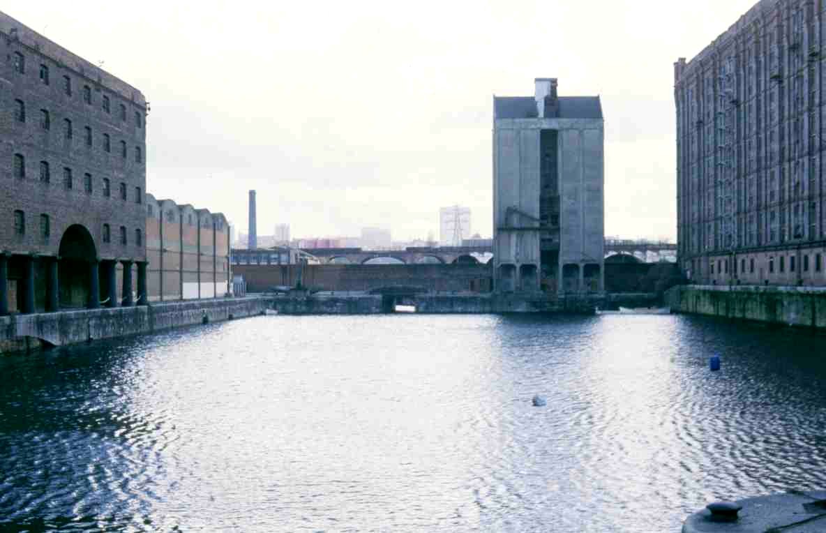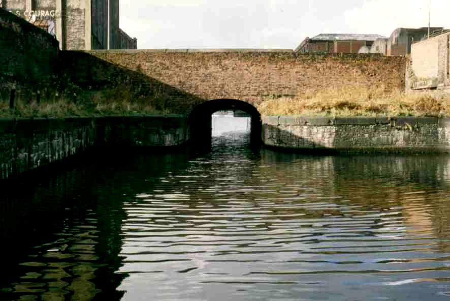 Stanley Dock... The canal enters beneath the bridge in the centre |