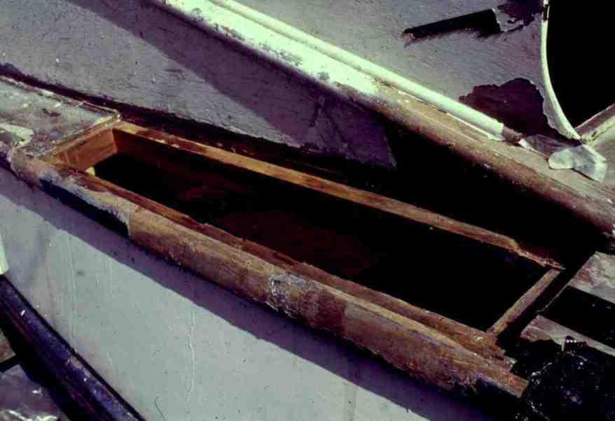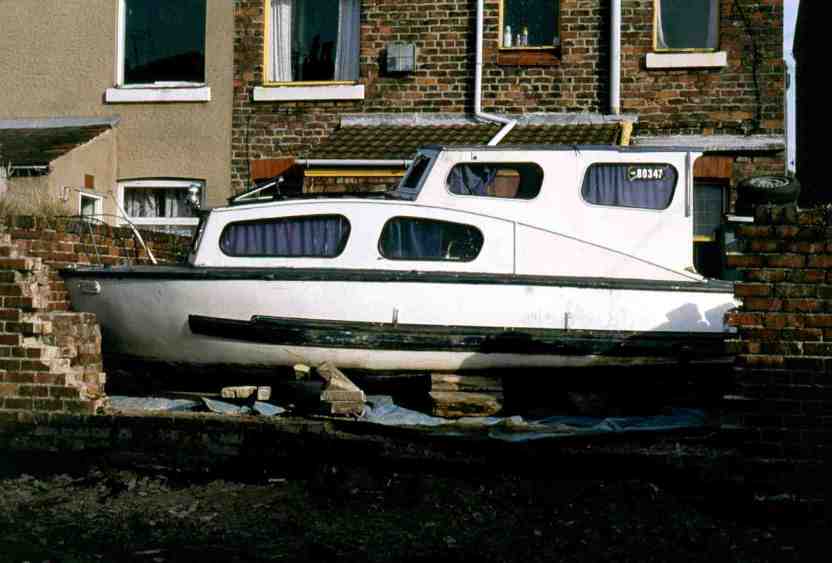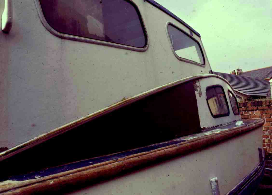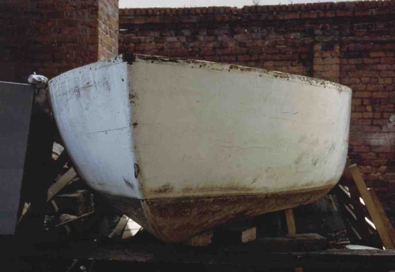 The old Marlin hull stripped of its superstructure stored at Taylors Boatyard in Chester in 1992