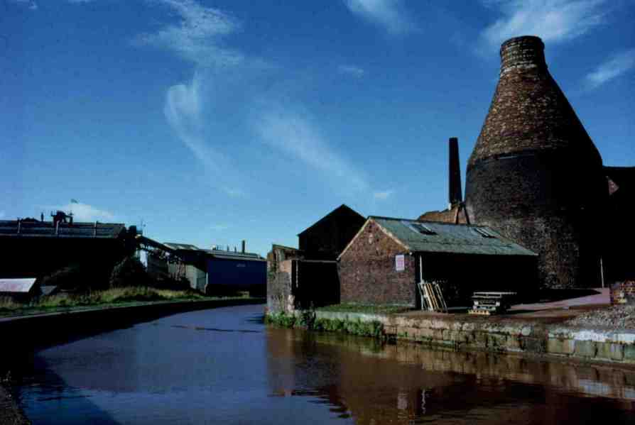 The Trent and Mersey Canal at Stoke on Trent complete with a bottle kiln on the right