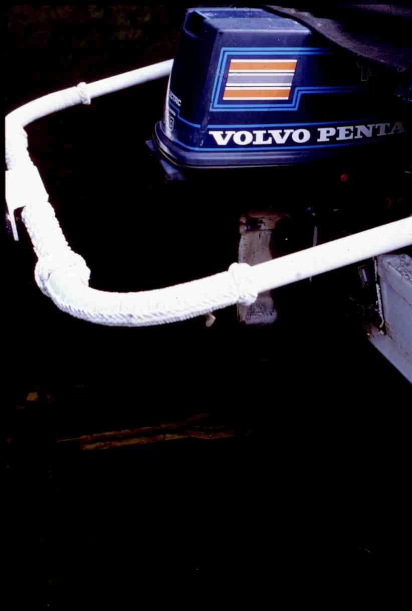 The Volvo Penta 140 and "Misty Water's" transom guard