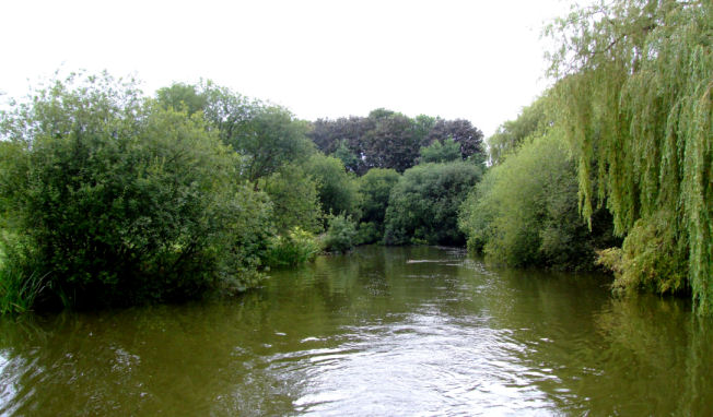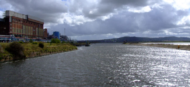 The tidal River Mersey at Warrington looking towards Walton Lock