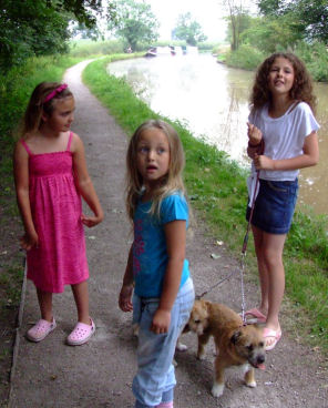 The weather during the week leading up to Easter had been hot and sunny and was promising to extend through the weekend. Both Ange and I had the Thursday off and in the morning we did our shopping which included purchasing a new roller blind for the boat's kitchen window to replace the Venetian blind which Ange disliked due to it attracting dust and being difficult to clean. After doing our shopping we made our way up to Lymm where we arrived mid-afternoon. On unfastening the rear deck canopy we found that Ian Gilbody had put our new ropes on the rear deck after they had been spliced by "Miserable Mike" from the Gardner Engine Society. We loaded our things onto the boat, fitted our new ropes and set off in the afternoon sunshine. We stopped at Oughtrington and moored temporarily in front of "Eclipse" to wait with Michelle and Popsy for Ian to finish work. Whilst we waited we filled our water tank whilst there then set off to meet Phil and family at Agden. Phil had just finished filling "Rensol's" water tank and we all cruised at sunset to just after Dunham Village where we moored for the night at a beautifully quiet and secluded location. When we moored we all had a catch-up, Phil showed us the work that he had done on "Rensol". He had been concentrating on the inside leaving the original grey and red oxide primer for now (more of which later). He introduced us to the new additions to their family... Lily and Tilly. They are Jack Russell/Lhasa Apso crossbreed puppies that are thirteen weeks old and very cute. Ian and Michelle's poodles seemed to get on well with them which is just as well as they will be in each others' company quite a bit.