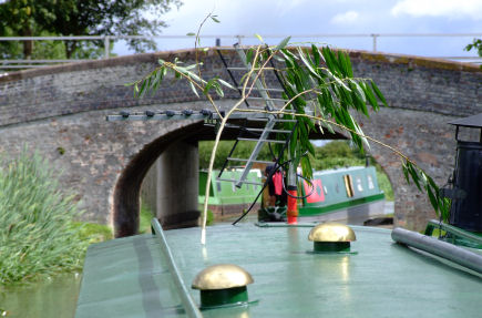 The beautiful weather held for the following weekend when we planned to finish our odd jobs in preparation for the Easter Cruise to Wigan. We had treated "Total Eclipse" to a new stern fender and after I had cleaned the stern paintwork it was fitted. I then proceeded to clean the exterior paintwork from the bow backwards whilst Ange finished varnishing the interior window surrounds. The port side, which is usually next to the bank was quite easy to clean but I knocked one of the pipe fenders off its cleat and it dropped into the canal. I could just feel the canal bed but there was no sign of the fender. After the port side was completed I turned the boat around the starboard side was a lot grubbier and required considerably more elbow grease!.