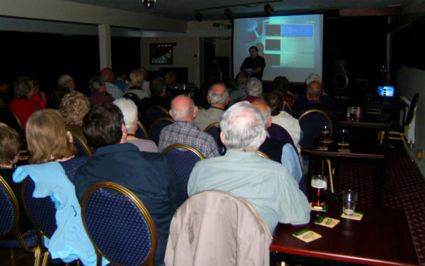 Last May we helped on the Federation of Bridgewater Cruising Club's stand at the Liverpool Boat Show later renamed Spring on the Liverpool Waterfront (see Canalscape Book 7). One thing that we discovered was that the FBCC did not possess a set of display boards to put the photographs of the Bridgewater Canal that I had supplied on. We managed to borrow a set from the Boat Museum and they were transported across the Mersey from Ellesmere Port to the Albert Dock by barge! I promised Dave Stewart... the FBCC chairman that I would put on a fundraiser so that a set of boards could be purchased. I planned "Saturday Night at the Movies" to be the fundraiser and arrangements were made for the 31st March 2012 to be the date of the show. I made a selection of films from my collection that would be of interest to members including films on the Manchester Ship Canal, Canal Heritage, Lymm Cruising Club, two "Webwise" films and my newly digitised audio/visual presentation... "Canalscape".