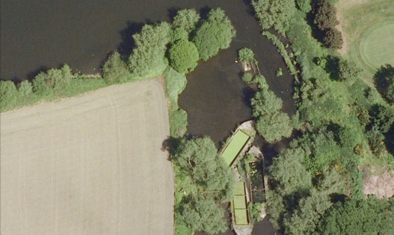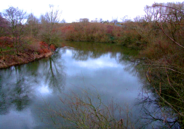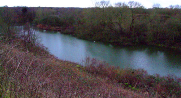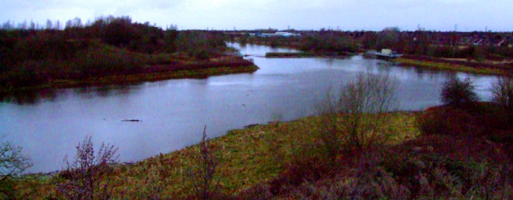 Two photographs of the disused meanders on what was once the River Mersey