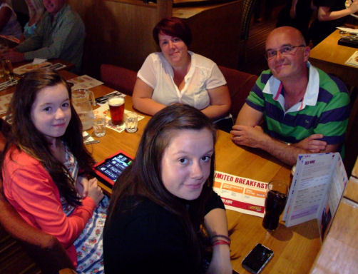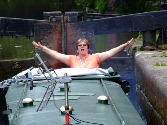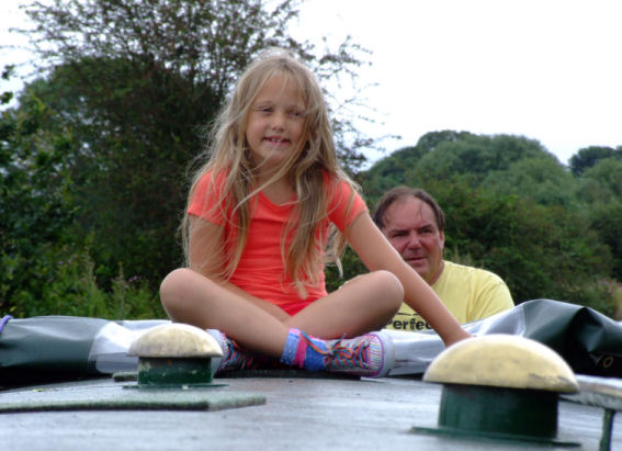 We moored at Middlewich next to the children's playground (which they were glad of) and whilst betting off the boat I heard a lady walking along the towpath say "That man looks like Cyril Wood!" She was correct... and so she should have been as she was one of my colleagues from Wirral Metropolitan College. I knew that one of my colleagues had a narrowboat that they moored at Orchard Marina but I didn't expect to bump into her and my other colleagues in Middlewich whilst they were out for a cruise. We were joined by Michelle's mum and dad and after a quick shower and change of clothes we had planned to go to the big Lock for tea. Unfortunately they had stopped serving food ten minutes before we arrived so it was "Plan B" to the Narrowboat pub and restaurant in Lewin Street. Ange and I had never been here before and we enjoyed what was most probably the best meal of our holiday cruise and didn't leave until after midnight. After an enjoyable evening we retired to our boats after an exhausting but enjoyable day. We were on home waters now and we cruised through the lush countryside of the Weaver Valley. Shannon had asked if she could sit on the roof of the boat as we cruised along. I do not approve of children sitting on the roofs of boats but she had asked so nicely and promised to do exactly as she was told, lying flat when we came to bridges, etc, so I relented. She later told us that this was one of the highlights of her holiday and said that it was like flying.
