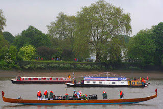 Sunday was the day of the Easter Bonnet Parade and the Children's Easter Egg Hunt and in true fashion the weather wasn't brilliant. The Easter Bonnets were very kindly judged by Jo Williams off nb "Last Un" from BMBC Runcorn. After the games everyone started to leave and make their way back towards Lymm. We retraced our steps to Dunham Massey where we planned to moor for the night and on the way passed the sunken Dawncraft at Oldfield Quay. The owners had removed some of their possessions from the boat and draped bedding etc over the towpath fence. They were desperately trying to rescue the boat by levering it out of the water with a plank on a lifebelt used as the fulcrum in the hopes that the water would empty out sufficiently to refloat their craft. It didn't look as though they were having a great deal of success and our hearts went out to them. Unfortunately there was not much we could do to help and felt guilty carrying on our way. We spent the evening with our friends and the next morning... Easter Monday, dawned extremely dull and showery. After breakfast we started the engine, returned to our mooring, loaded the car and went home. This was the first cruise of the season and we live in hopes that the weather warms up and makes a change for the better.