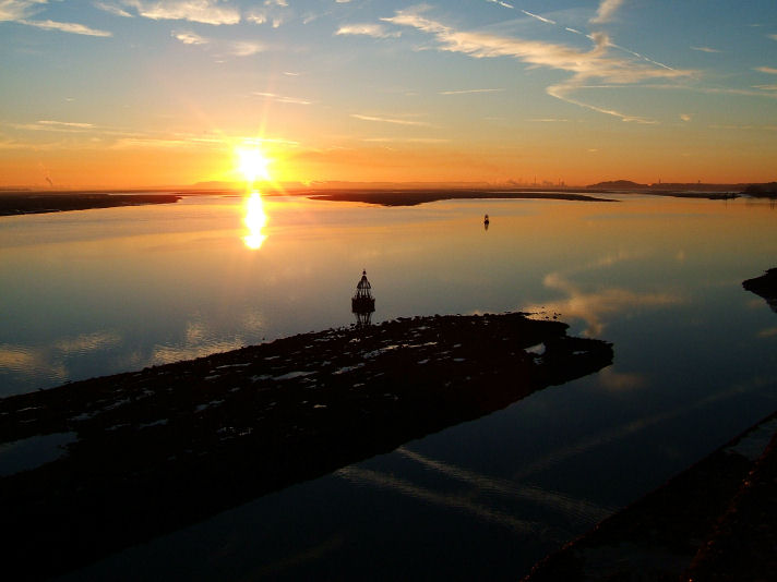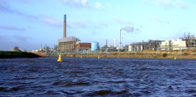 An aerial view of the Mersey's meander in the Woolston area with the MSC - bottom and Woolston New Cut - the straight line at the top