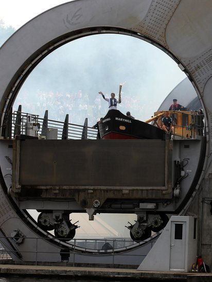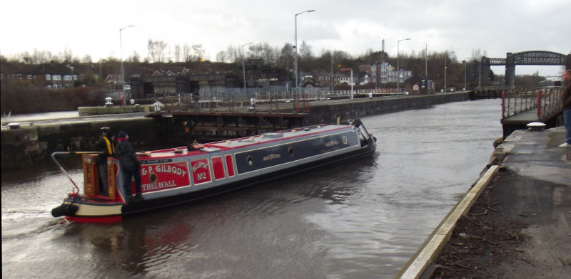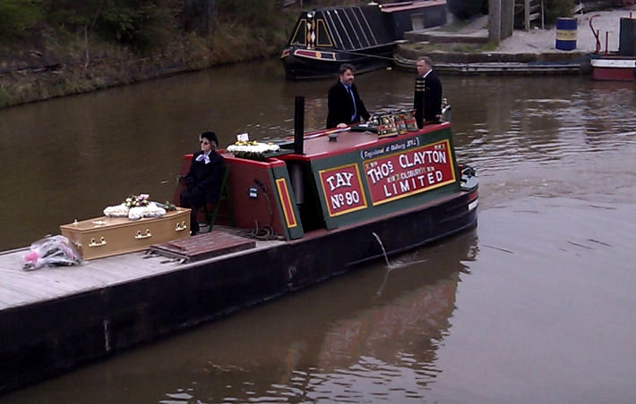 Maureen Shaw's coffin on board nb "Tay" passing through "her" lock one last time