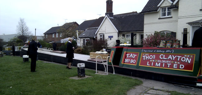 We had known Maureen for many years and admired the way that she guided novice boaters through "her" lock. The last time we saw her she asked me to trim the brambles overhanging the entrance to the lock before we entered. She even supplied a pair of hedge clippers for me to do the job! We first noticed that Maureen had left her cottage last summer and were told that she had gone into sheltered accommodation. She passed away on 17th March 2012 in Leighton Hospital, Crewe after a long illness. We were not able to attend her funeral on the 30th March but we were told that her coffin was to be transported on board a traditional narrowboat through her lock and down the Middlewich Flight one last time on the way to the funeral. The boat in question was the ex-Thomas Clayton oil boat "Tay" and was the sister craft to "Spey" on which she once worked. About fifty mourners followed "Tay" along the towpath on its way to St Michael's Church in Middlewich where the funeral took place. I am grateful to Pauline and Bob McCulloch for supplying the photographs and allowing me to use them.