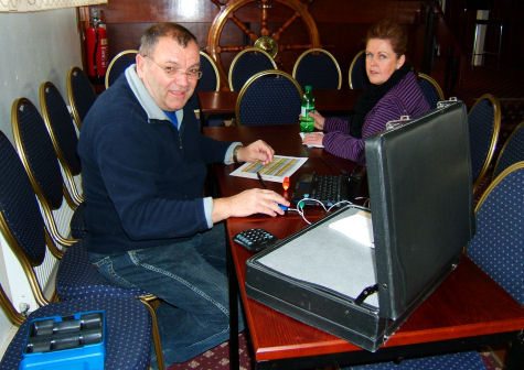 The clubhouse was converted into the "Lymm Odeon" complete with "kissing seats" and usherettes (Ange and Michelle Gilbody) selling popcorn, etc. I had brought my monster screen, Jamo D266 loudspeakers, Denon PMA 355 UK amplifier with the signal sourced from my Toshiba Satellite laptop computer with background music fed from my iPod. I had borrowed a Sony VPL CS7 video projector from work to provide the projection facilities whose 1500 Ansi Lumens and SVGA resolution were more than sufficient for the task. Admission was £3 and there was a raffle in the interval with food provided by Derek Ridpath and his team consisting of Phyllis Greenough and Lynda Whalley. The show was a great success and enjoyed by everyone. In total £250 was raised for the FBCC which will go a long way to fund the purchase of the display boards. On a more personal note, this was the first time I had used the computer and a video projector for a presentation and I have to say that it was a lot easier than using "analogue" projectors... both slide and ciné (even if I did have difficulty with one of the DVDs not reading). The loss of quality over analogue sources was not apparent and it has encouraged me to look into the purchase of a video projector in the future. Quite a few members of the audience remember my previous presentations at the Club and they can't wait to see them in high-definition with a digital sound track. I shall have to get cracking on them although I have scanned many of the photographs for them already.