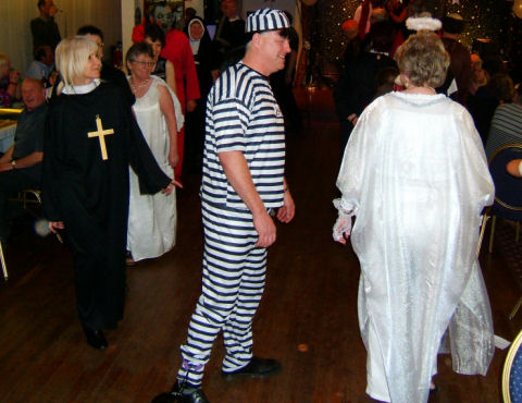 There was a Saints and Sinners social in the evening at the Clubhouse. In true fashion Ange and I turned up at to event in appropriate dress... Ange as a Vicar and me as a sinner in black. As well as good food courtesy of Derek Ridpath a singer entertained us and got Michelle Gilbody and Ange onto the stage as backing dancers in what was reminiscent of a scene from the film "Sister Act". A great evening with everyone entering into the spirit of the occasion and enjoyed by all.