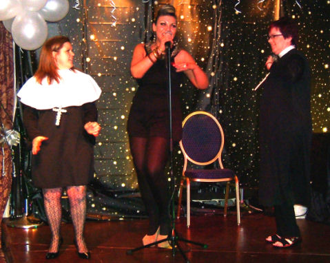 Michelle and Ange accompanying the singer at the Saints and Sinners evening