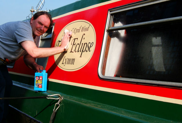 Ange took her grandaughter Shannon to Euro Disney a week later and as it was not my scene I took advantage of her absence to go up to Lymm on the Friday evening to do some work on the boat when I had finished work for the week. Seeing as the car was empty except for myself I took my giant projection screen up and left it in Ian Gilbody's garage in preparation for the "Saturday Night at the Movies" film show I am due to give the following weekend. On arrival my arrival at the boat I put the domestic batteries on charge to give them a bit of a boost as they were a little on the low side. The next morning I started the engine (it started first time) and took the boat to the Clubhouse to fill the water tank. Much to my relief here were no leaks caused by frost thanks, no doubt, to my fitting a drain-off valve last year. Next I returned to our mooring to spring clean the boat's interior. When I had finished that and as the weather was just perfect with not a cloud in the sky (a passing boater observed the summer had come in spring) the exterior got a good washing followed by a couple of coats of much-needed Mer wax polish (Wax on, wax off... two coats now Biff!).